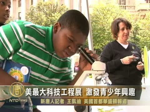 【新唐人2010年10月25日訊】美國歷史上最大規模的科技與工程展示會23日和24日兩天在華盛頓的國家廣場和附近博物館內舉行。活動吸引了數以萬計的青少年和家長,並有多位諾貝爾科學獎得主和宇航員們與觀眾現場互動。