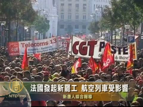【新唐人2010年10月28日訊】法國工會發起新的罷工,繼續反對總統薩爾科齊提出的退休制度改革計劃。罷工抗議活動使得航空航班服務大幅削減,列車服務也受到影響。