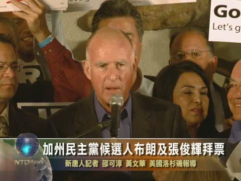 【新唐人2010年11月1日訊】美國中期選舉鄰近,數位加州民主黨候選人,包括州長布朗及主計長張俊輝等人,把握選舉前的最後一個週日,到南加州會見選民。請看本臺從洛杉磯傳來的報導。