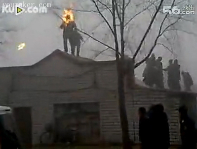 【新唐人2010年11月2日訊】拆遷戶自焚慘劇重演,黑龍江密山市56歲的男子崔德喜,因為抵制拆遷,就在大批官員面前,在自家屋頂淋汽油引火自焚,在場官員竟袖手旁觀,自焚視頻被上傳到網絡後,僅一天就有超過40萬次點擊率,網民紛怒斥官員冷血。