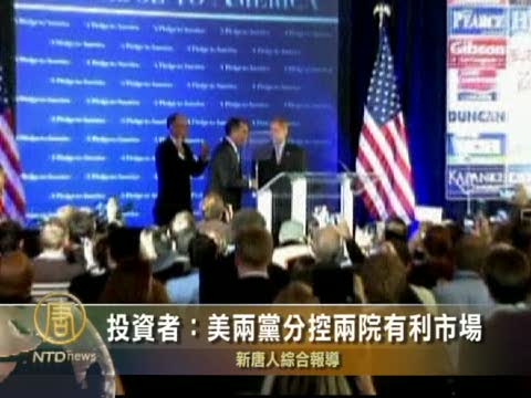 【新唐人2010年11月4日訊】德國證券公司CBS(Close Brothers Seydler)首席交易員奧利弗羅斯星期三表示美國中期選舉共和黨的勝利,雖然對美國的政治前景也許不利,但兩黨制衡卻是投資者喜歡的穩定環境。