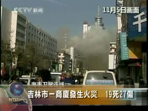 【新唐人2010年11月6日訊】11月5號上午,吉林市琿春街商業大廈發生大火,火勢兇猛,燒燬4層大樓,致使91名工人和商場顧客被困,最終大火在北京時間6號早8點30分扑滅,搜救工作也宣告結束。