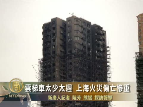 【新唐人2010年11月16日訊】中國上海靜安區15日下午一幢28層民宅發生火災。官方報導死亡的人數上升至53人,正在醫院治療的傷者有70人。當地居民分析火災傷亡慘重的原因是,能發揮救火作用的雲梯車太少,而且來的太遲。
