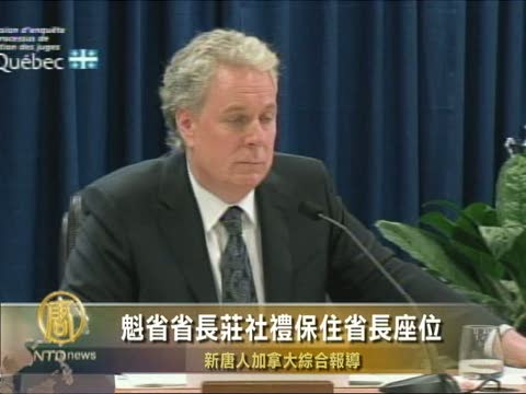 【新唐人2010年11月25日訊】魁省省長莊社禮(Jean charest)在最近的一次不信任投票中險勝,保住了省長的位置。