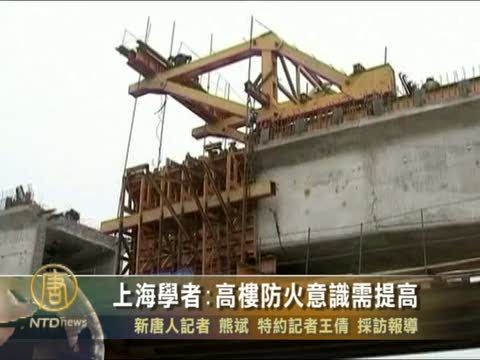 【新唐人2010年11月25日訊】上海15號的一棟28層居民樓發生火災,導致人員重大傷亡,燒出了中國高樓的消防問題。海防災救災研究所副所長羅奇峰教授表示,建築物越高“煙囪效應”越明顯,需要提高防火意識、消防技術、加強管理和演練。