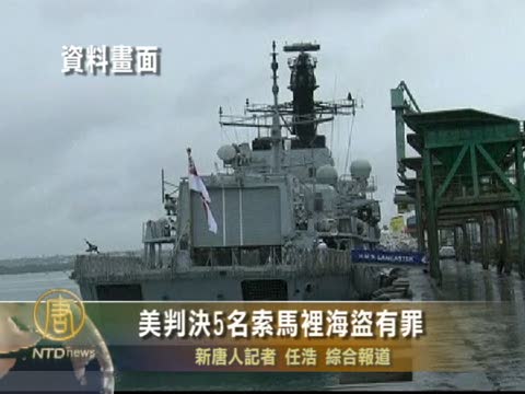 【新唐人2010年11月25日訊】星期三(11月24號),美國維吉尼亞州的一家聯邦法院,判決今年4月在非洲海岸襲擊美國海軍的5名索馬里人犯有海盜罪等罪行。