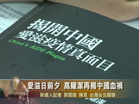 【新唐人2010年12月1日訊】中共官方稱,到10月底止,中國共有6萬多人死於愛滋病。選在世界愛滋日前夕,素有「中國防愛第一人」之稱的高耀潔醫師,第一次在台灣出版新書,希望在兩岸交流頻繁之際,把中國的愛滋真相傳向更多的華人讀者。雖然高耀潔年事已高,無法來臺,不過仍透過電話在新書發表會上發聲,許多台灣專家學者也到場表示支持。