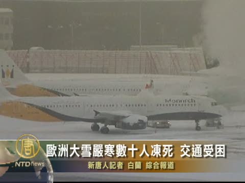 【新唐人2010年12月4日訊】歐洲多國持續嚴寒及降大雪,連日死亡人數上升到至少四十人,波蘭普遍地區氣溫,處於攝氏零下十五度,又有十多個醉酒漢及露宿者凍死。英國的情況稍有改善,英國第二大機場蓋特威克機場在關閉三天後重新開放,但仍有航機取消或延誤。希斯路機場雖然未有關閉,但亦提醒旅客,部分航班會延誤或取消。