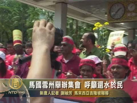 【新唐人2010年12月6日訊】馬來西亞雪蘭莪州政府12月5日中午號召民眾發動一場「還水於民」大型集會遊行,要求國家元首關注雪州水資源私營化出現的問題,歸還水的權利給人民,並為民眾爭取乾淨水源與合理的水費。請看本臺記者發自吉隆坡的採訪報導。