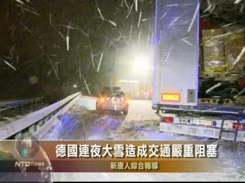 【新唐人2010年12月15日訊】在德國東部,由於連夜的大雪,星期三(十二月十五日)早上造成許多地方交通阻塞。
