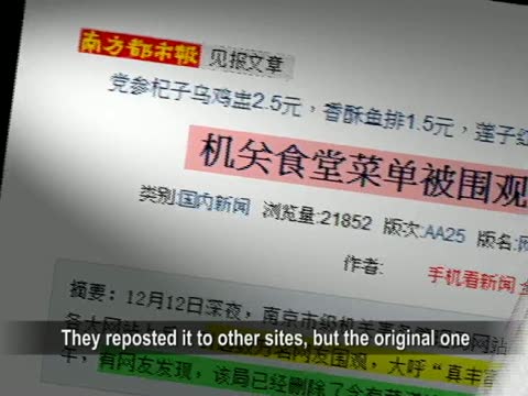 【新唐人2010年12月17日訊】物價上漲,農民工不敢買水果,白領上班帶飯。最近卻有網民在南京一個市級機關網站上發現了「每週菜譜」----大葷、熱炒、素菜、燉盅還有水果、甜品,每週120道菜不重復,價格更是便宜。然而,四川敘永一中,卻傳出食堂食物缺斤短兩,導致學生抗議吃不飽而砸食堂的事件。