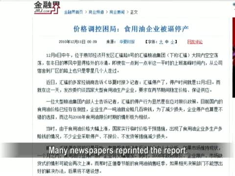 《華夏時報》11號刊發了《價格調控困局:食用油企業被逼停產》的報導,《重慶晚報》、《第一財經日報》等多家媒體進行了轉載。