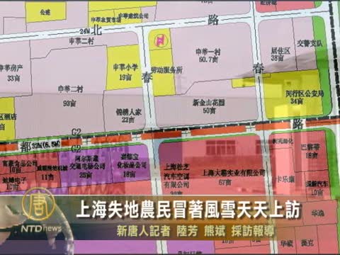 【新唐人2010年12月18日訊】上海閔行區莘莊工業區,圈佔當地數個村莊大批土地,沒有合理的補償安置,上千失地農民多年來堅持上訪遭當局威脅恐嚇或抓捕,目前數百農民不畏打壓,在寒冬中仍冒著風雪天天上訪。