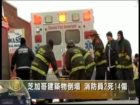 【新唐人2010年12月23日訊】星期三早上,美國芝加哥一座建筑物爆發大火,一堵磚牆突然倒塌,造成到場救火的兩名消防員殉職,另外有14名消防員受傷被送入醫院。據當地消防官員說,其中4人情況嚴重或危急,另外10人情況穩定。