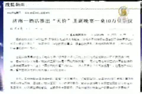 【新唐人亞太台2010年12月24日訊】平安夜吃耶誕大餐的風氣,也吹到了中國,在大陸許多酒店紛紛推出豪華晚宴,山東濟南一家酒店一席晚宴叫價十萬人民幣,北京有酒店則推出每位8,880元的“明星級”聖誕餐,不過,有民眾看在眼裡,認為這種奢侈的風氣,只會更增加社會矛盾。