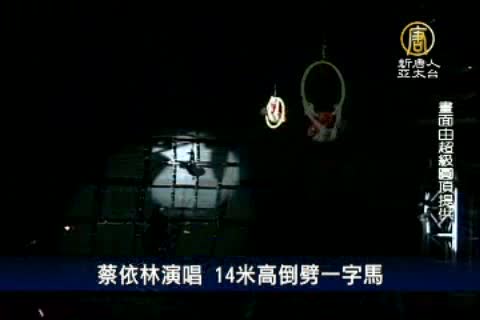 【新唐人亞太台2010年12月26日訊】蔡依林演唱會,昨天晚上進入第二場,小天后再秀絕技!在安可曲時,蔡依林在14公尺高的鋼環上,演出一字馬和人形拱門,場面相當驚險,也讓全場歌迷尖叫聲連連。