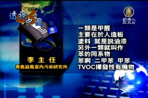 【新唐人亞太台2010年12月26日訊】來關心中國新聞真相報導。中國九成新裝修的房子,室內長期釋放有毒化學物質甲醛和苯,導致癌症患者日益增多,專家建議新裝修的房子,閒置三個月到半年的時間,讓有毒物質釋放一部分後再居住。