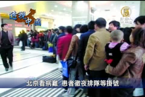 【新唐人亞太台2010年12月27日訊】帶您關心中國新聞真相報導。寒冬已臨的北京,許多民眾為了看病,忍著嚴寒,徹夜守在大醫院門外排隊等待掛號;就在平安夜晚上,有排隊民眾告訴記者,他們覺得在大醫院排隊掛號,比過年買春運車票還難。
