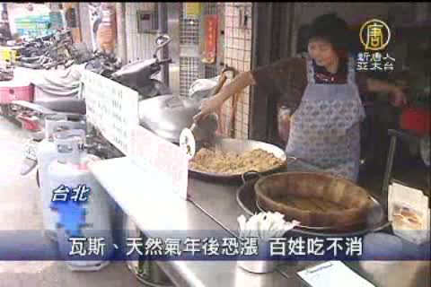【新唐人亞太台2010年12月30日訊】那麼,民生物價漲不停,冬天冷,瓦斯用量也高,雖然中油承諾黃曆年前瓦斯和天然氣價格都暫時不會漲,但是年後還是可能會再調漲,算一算桶裝瓦斯半年內已經漲了4次,年後再漲價,小攤販直說吃不消!