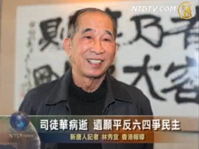 【新唐人2011年1月3日訊】深受港人敬重的香港支聯會主席司徒華於星期日(1月2日)中午因肺癌病逝,終年79歲。噩耗傳出,各界紛紛表示哀悼。支聯會同人強調,一定會繼承司徒華平反六四、建設民主中國的遺志。