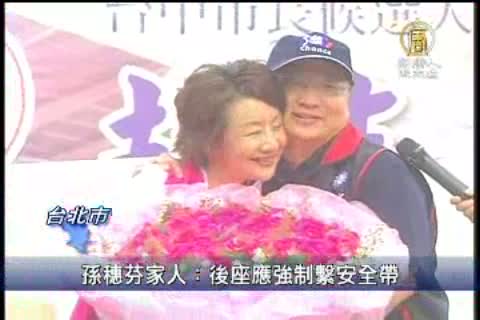 【新唐人亞太台2011年1月9日訊】國父孫女孫穗芬在元旦發生車禍,坐在後座的她因未繫安全帶,傷勢嚴重送醫急救,孫家人建議,希望台灣能立法要求後座乘客繫安全帶,確保安全,交通部表示會在下會期提出修法,有切身之痛的民進黨前立委陳朝龍呼籲,立委盡速推動修法,不要讓遺憾再發生。