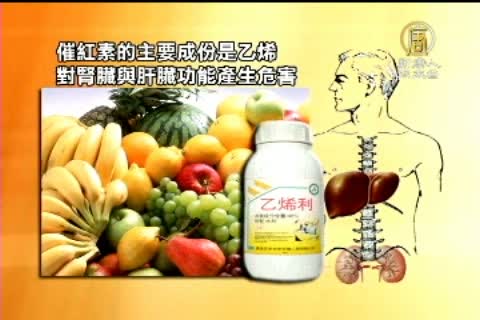 【新唐人亞太台2011年1月14日訊】在中國大陸市場上用藥水催紅水果是普遍現象,專家指出,這些催熟劑的成份是激素,常吃會損害胃腸和肝腎,造成很多小孩性早熟,建議購買水果的時候不要“以貌取果”。