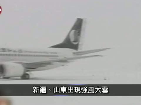 新疆地區出現強風大雪,風力達七到八級,有上百人一度滯留大風口,直到出動掃雪機護送才脫困。而山東煙臺機場積雪達10公分,關閉近4個小時後才再度開放。