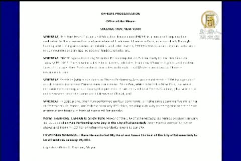 美國神韻藝術團的總部在紐約,1月19日首次蒞臨紐約州府奧伯尼地區,獲得當地各級政要褒獎,斯克內克塔迪市市長斯特拉頓(Brian U‧ Stratton, Mayor of SHCENECTADY)在褒獎中宣佈1月19日為「神韻日」。