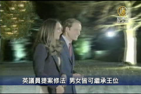 【新唐人亞太台2011年1月20日訊】隨著英國威廉王子和未婚妻凱特‧密道頓的婚期接近,英國民眾對王室的繼承規則也逐漸關注,最近英國下議會議員提案,呼籲改革古老的繼承法律,讓威廉的兒女不論男女都可繼承王位。