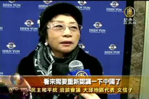 【新唐人亞太台2011年1月22日訊】神韻在韓國大邱市的首場演出後,市民們盛讚神韻演出之美。一位女性社會活動家在觀看演出後表示,看到了一個全新的中國。