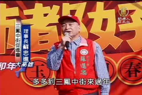 【新唐人亞太台2011年1月24日訊】有「北迪化、南中街」之稱的高雄三鳳中街,為了刺激買氣,請來人氣暴紅的藝人王彩樺並與超過二千位的民眾同樂,還有舉辦一元競標活動,副市長李永得也在現場發送紅包,讓市民朋友討個吉利。