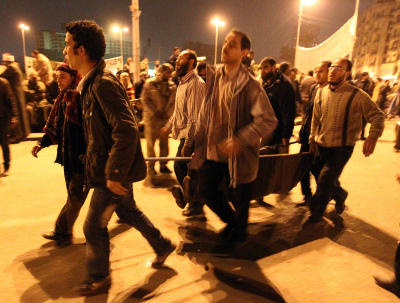 穆巴拉克的數千名支持者在白天衝入市中心的解放廣場,拆除反政府示威者設立的路障,有的騎在駱駝或馬背上,揮舞鞭子和棍棒抽打人群。雙方互相投扔石塊和打鬥。人們還聽到槍聲。