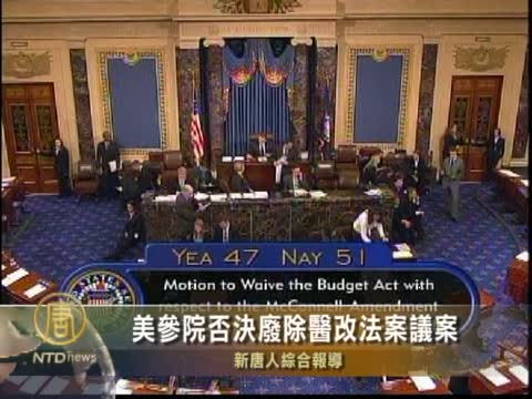 【新唐人2011年2月3日訊】星期三(2月2日),美國國會參議院投票否決了全盤廢除醫改法案的議案。