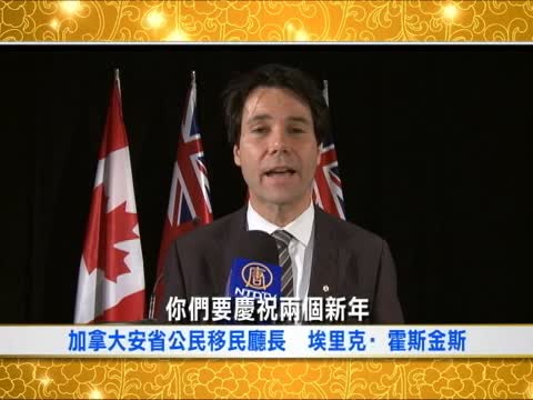 【新唐人2011年2月5日訊】大家好,我叫埃裏克.霍斯金斯,是多倫多聖保羅選區的安省議員。我要祝願所有觀眾新年快樂!包括慶祝兩個新年。