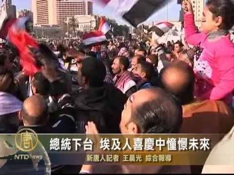【新唐人2011年2月12日訊】在埃及總統穆巴拉克下臺後,開羅解放廣場上數萬人感到十分激動。星期六,他們再次走上街頭,慶祝民主抗爭獲得的勝利,並滿懷希望憧憬著未來。