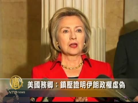 (美國國務卿希拉里.克林頓:)“我們反對暴力,譴責伊朗政府使用安全部隊、訴諸暴力來鉗制本國人民言論和思想自由的行為。”