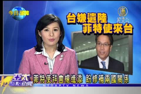 【新唐人亞太台2011年2月21日訊】菲律賓指派來台灣說明「台嫌遣中」事件的特使、前參議員羅哈斯,直到下午與外交部長楊進添會面前,都沒有公開致歉,僅一再強調要修補兩國關係。而羅哈斯在下午兩點半,在與外交部部長楊進添會面時說:自己目前雖只是一介平民,但受菲國總統艾奎諾三世所託,特別來台說明此事。2人在媒體面前,只公開會面約5分鐘,隨即閉門會談。