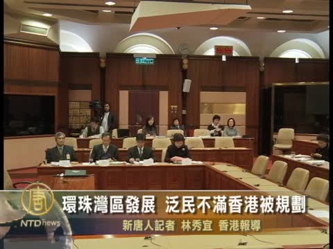 【新唐人2011年2月25日訊】香港立法會一委員會近日討論橫跨粵港澳三地的“環珠江口宜居灣區建設重點行動計劃”,多位泛民議員狠批當局諮詢太倉促欠透明,缺乏公眾參與,並擔憂大陸與香港共同進行研究,令香港淪為“被規劃”。