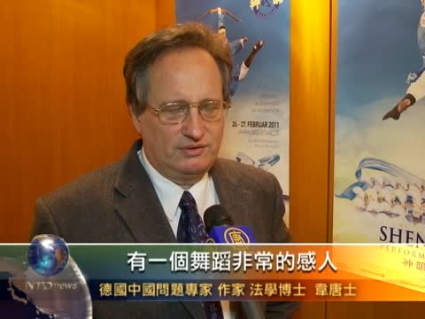 【新唐人2011年3月1日訊】神韻連續在法蘭克福的三場演出,吸引了主流社會,諸多各界成功人士與名人前來觀賞。神韻讓人們終於看到中國真正的傳統文化,如此輝煌與燦爛,神韻給人們心靈帶來巨大震撼,觀眾們窮盡人類最好的詞彙發自內心地熱情讚美神韻。
