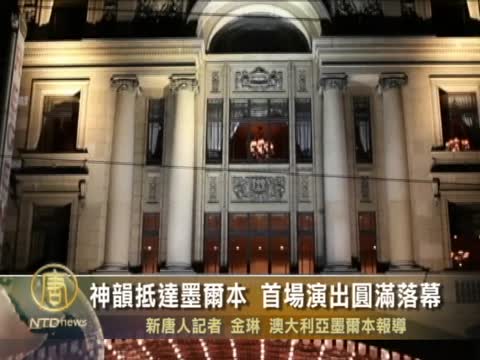 【新唐人2011年3月2日訊】本週二,神韻國際藝術團在澳大利亞墨爾本的首場演出圓滿落幕,演出氣勢宏大,畫面精美,旋律動人,如仙樂渺渺,為這座澳大利亞的人文之都注入了來自東方的藝術生命力。