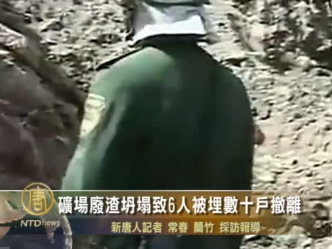 【新唐人2011年3月2日訊】中國四川省攀枝花市,近日發生一礦業公司的排土場滑塌事故,官方稱,造成四死2失蹤,失蹤者生存機會渺茫,另外,坍塌土石還造成當地居民飲水管道,及電力輸送線路損毀。