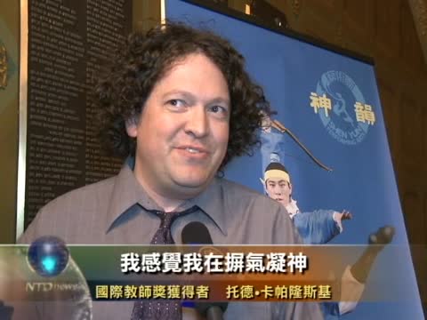 國際教師獎獲得者托德·卡帕隆斯基:“這絕對真令人驚奇!我感覺我在摒氣凝神,這真是一場雄偉壯觀的演出。色彩和音樂把你拉進演出,使你感覺你就是故事的一部分。我最喜歡的節目之一是開場節目,其中的景象熱情和力量立即把你帶到演出中。”