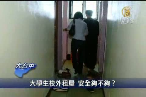 【新唐人亞太台2011年3月4日訊】這起造成東華大學1名學生身亡的祝融意外,讓學生在外住宿的安全性問題,受到關注。接下來的這則報導,我們的記者帶您直擊大學生在學校外面的宿舍,實地看到現在的大學生所面臨的住宿問題。