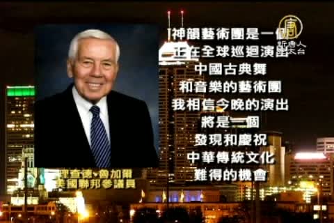美國聯邦參議員 理查‧魯加爾(Richard G Lugar, United States Senator)在賀信中表示:「神韻藝術團是一個正在全球巡迴演出中國古典舞和音樂的藝術團。我相信今晚的演出將是一個發現和慶祝中華傳統文化難得的機會。」