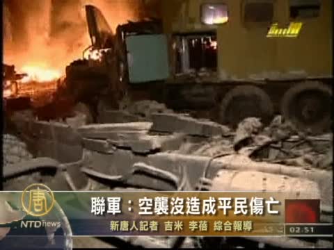 【新唐人2011年3月24日訊】星期四,西方聯軍戰機空襲利比亞進入第五個晚上,當地電視臺報導,空襲重創了卡扎菲的一處軍事基地,聯軍稱空襲沒有造成平民傷亡。