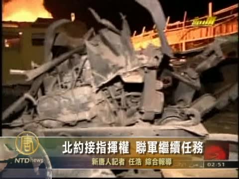 【新唐人2011年3月26日訊】北約組織星期四同意從歐美聯軍手中接管維護利比亞禁飛區的任務。星期五(3月25號),聯軍在利比亞行動的指揮權,已經逐步順利移交給北約,當天的空中作戰及巡視任務也在緊張但有秩序的進行著。英國官員表示,聯軍空襲的成功,保護了平民。