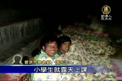 【新唐人亞太台2011年4月1日訊】好的,謝謝吳惠林教授。繼續來看到不只日本發生強烈地震,上個禮拜在緬甸所發生的7.2強震,中國雲南省西雙版納傣族自治州,受到波及。州政府近日公佈,全州有5萬餘人受災。當地災民向我們的記者透露,地震造成很多房子龜裂,擔心餘震的老百姓都住在帳蓬,而學校倒塌,讓學生只能是露天上課。我們的獨家報導。
