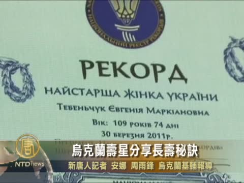 【新唐人2011年4月7日訊】烏克蘭女壽星葉夫根尼•捷邊秋克今年109歲,烏克蘭官方確認,她是目前烏克蘭在世的最長壽老人。日前她愉快的和媒體分享了自己長壽的秘訣。