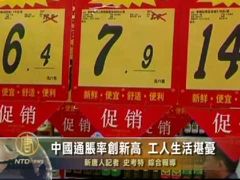 【新唐人2011年4月15日訊】中國國家統計局(National Bureau of Statistics)星期五(4月15日)發表第一季度的通貨膨脹率和經濟成長率,確認通脹已經創下了32個月以來的新高,達到5.4%。物價的上漲引發憂慮,貧窮的工人階層該如何生活?