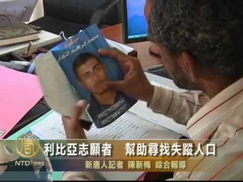 【新唐人2011年4月18日訊】利比亞東部重鎮艾季達比亞(Ajdabiyah)的一群志願工作者,擔負起一項艱鉅的任務,幫助越來越多遭卡扎菲部隊綁架或殺害的失蹤者的家庭,尋找親人的下落。